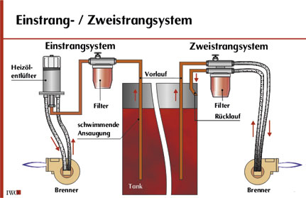 EinstrangsysteHeizölhandel Bothe Kamen . Bei dem Einstrangsystem wird meistens ein System mit Rücklaufzuführung zum Ölfilter bzw. Der Kurzschluss in der Ölpumpe ist eher selten.